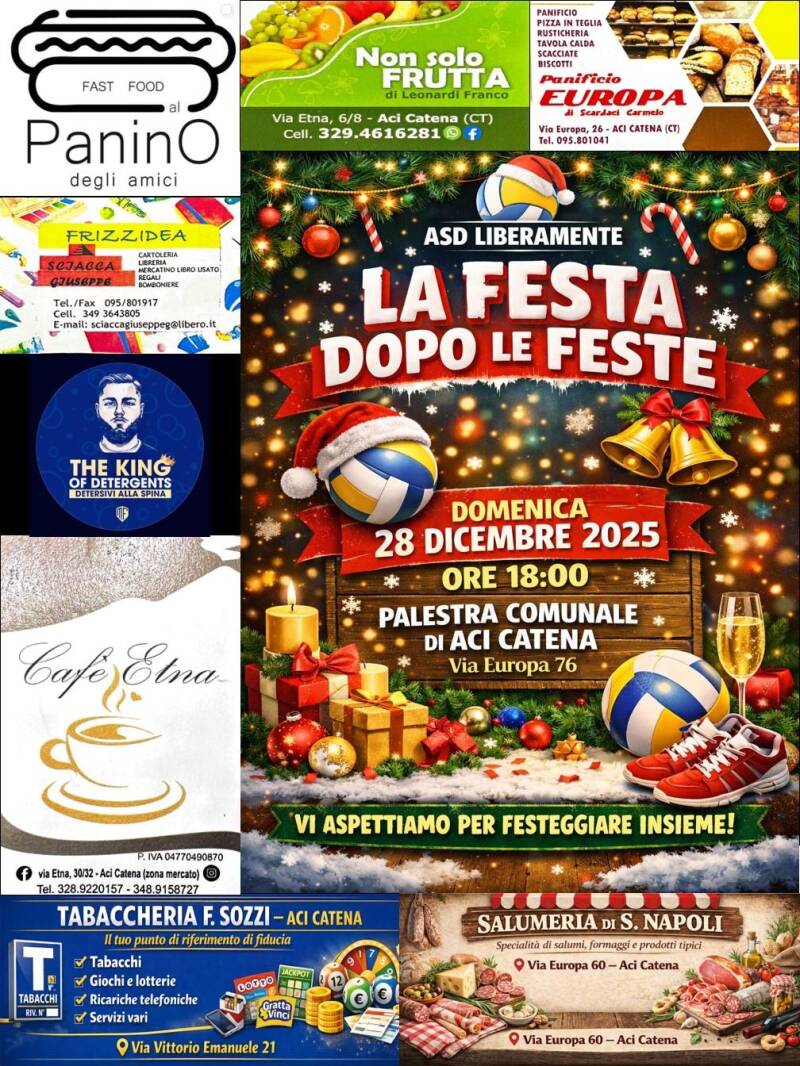 ISCRIZIONI APERTE AI CORSI DI PALLAVOLO!Vuoi metterti in gioco, divertirti e far parte di una vera squadra?Con ASD LIBERAMENTE il volley è passione, crescita e competizione! 💙💛🔹 Per ragazzi e ragazze dagli 8 ai 18 anni🔹 Corsi a partire dal 8 settembre🔹 Allenamenti 3 volte a settimana: LUNEDÌ – MERCOLEDÌ – VENERDiVia Europa 76 Aci Catena 🔹 Partecipazione a tornei ufficiali di federazione🎯 Che tu sia alle prime armi o voglia migliorare le tue abilità, abbiamo il corso giusto per te!📍 Vieni a conoscerci e a provare senza impegno!📞 Info e iscrizioni: 320 074 6546📩 Scrivici in DM o contattaci su WhatsApp LIBERA LA TUA ENERGIA, GIOCA CON NOI!